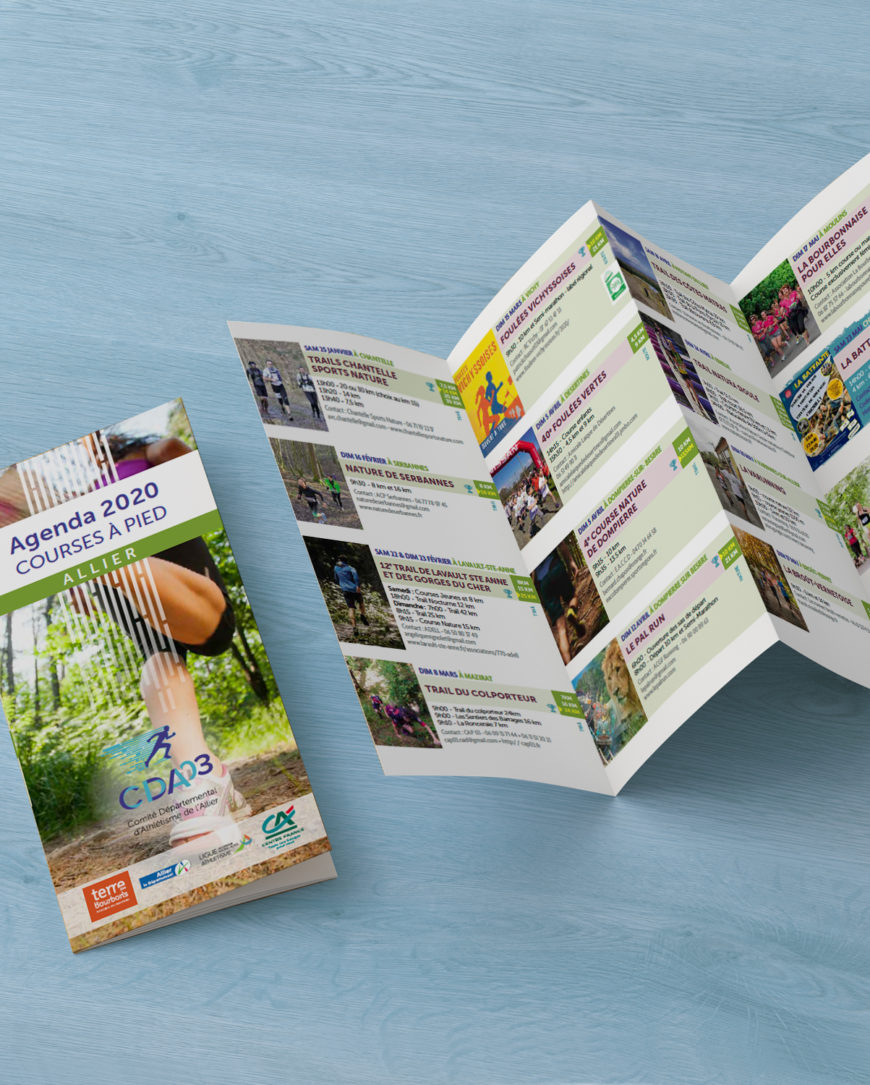 Création et impression d’un dépliant pour le Comité Départemental d’Athlétisme de l’Allier.