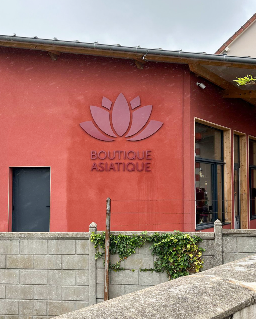 Confection d’une enseigne en lettres découpées pour la boutique et le restaurant asiatique à Noyant d’Allier.